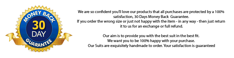 Our suits are meticulously handcrafted and stitched by our experienced tailors. The suit's quality will be checked when finished and will be dispatched directly to you from our workshop by DHL. Our turnaround time is 3-4 weeks.